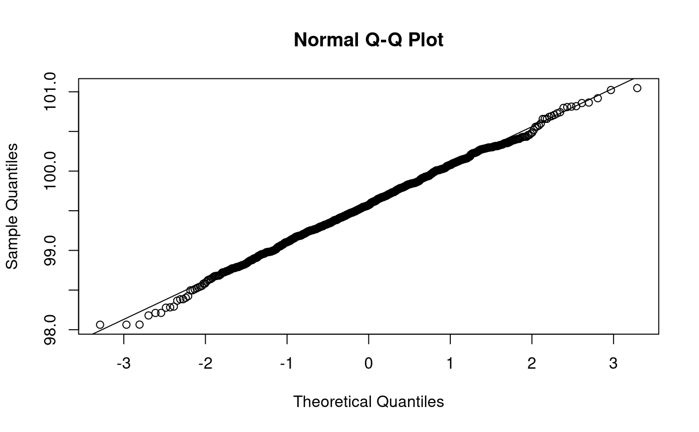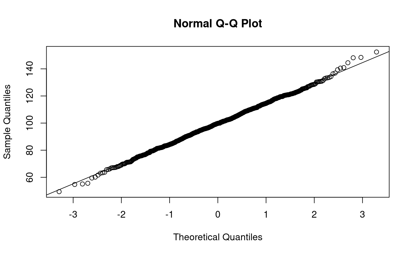 Let \(\mathbf{x}\) be a vector of length \(n = 1000\) of realizations of the random variable \(X\). Each observation \(i\) is independently sampled from the normal distribution with \(\mu = 100\) and \(\sigma^2 = 225\).
