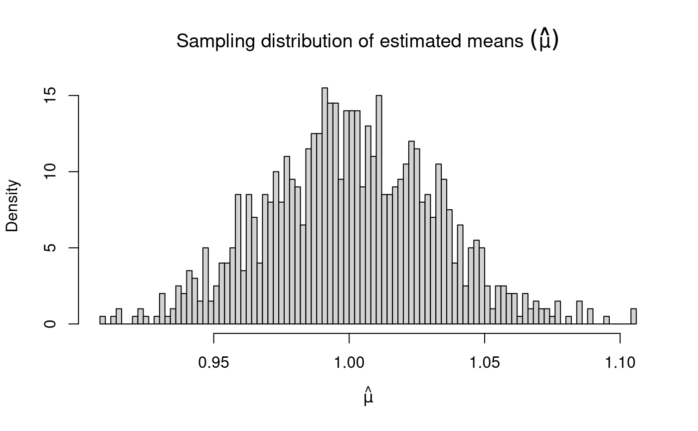 Population mean. | \(\mu\) | 1 | 1.0007347 | 0.0009943 | 0.0315320 |